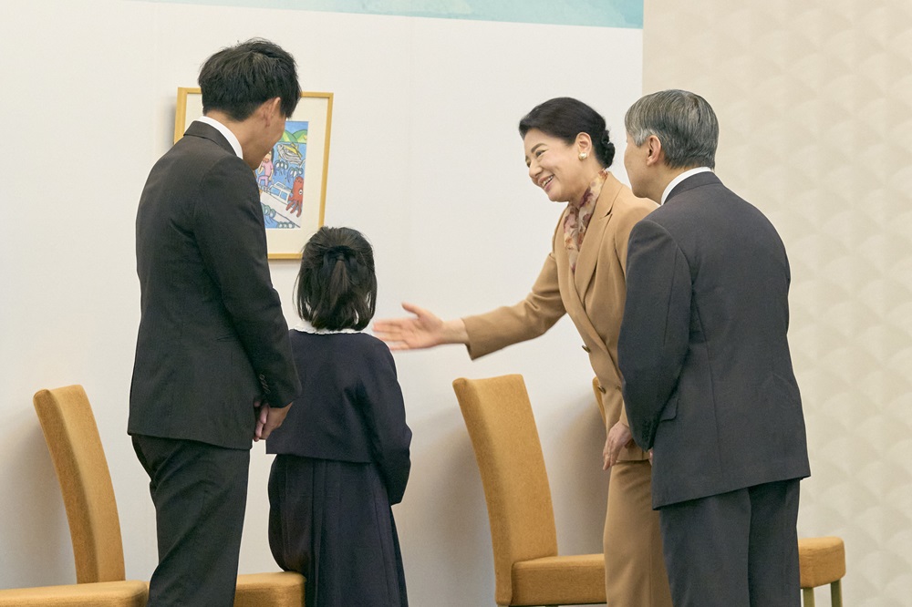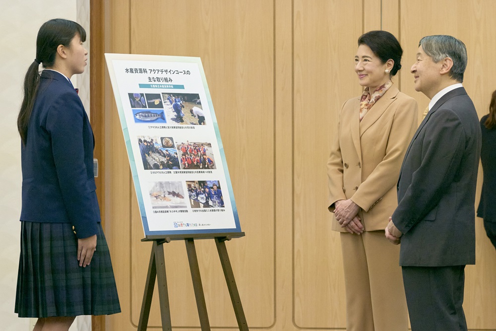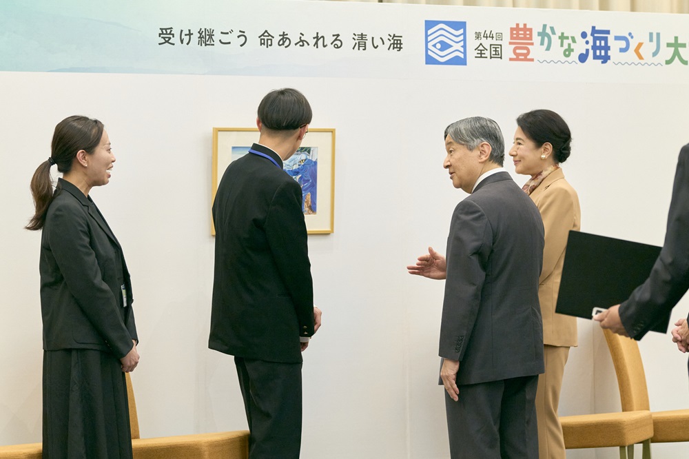 天皇皇后両陛下は、第44回全国豊かな海づくり大会絵画・習字優秀作品をご覧になりました。
