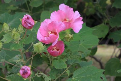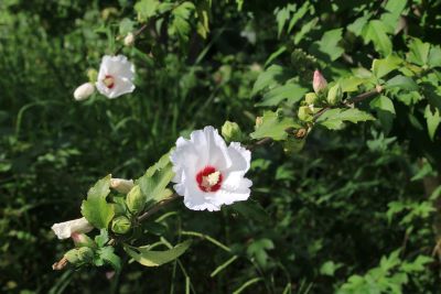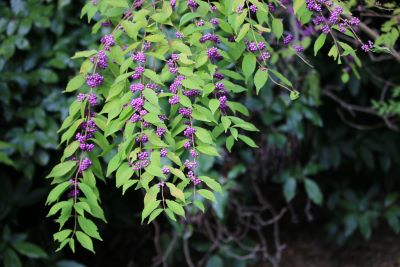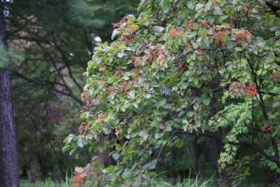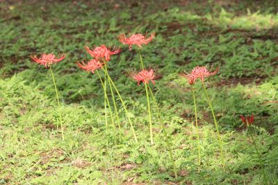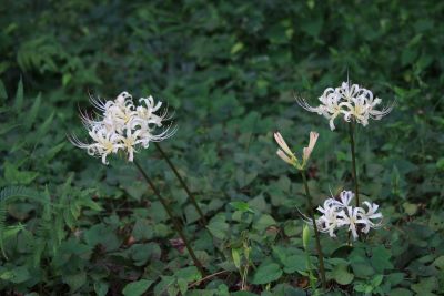 同心番所周辺でシロバナマンジュシャゲが開花し、諏訪の茶屋周辺ではヒガンバナと隣り合って仲良く咲いています。二の丸雑木林ではヤマホトトギスが開花し、ガマズミの実が色づき始めました。新雑木林では秋の七草のオミナエシが見頃を迎えています。