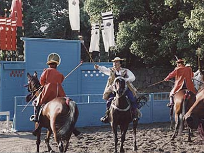 やがて戦のない江戸時代中頃になると、母衣は美しさや伝統をあらわす馬術として使われるようになったんだ。