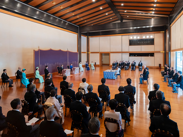 この儀式には、皇族の方々も出席されて、一緒にお話を聞いているんだ。